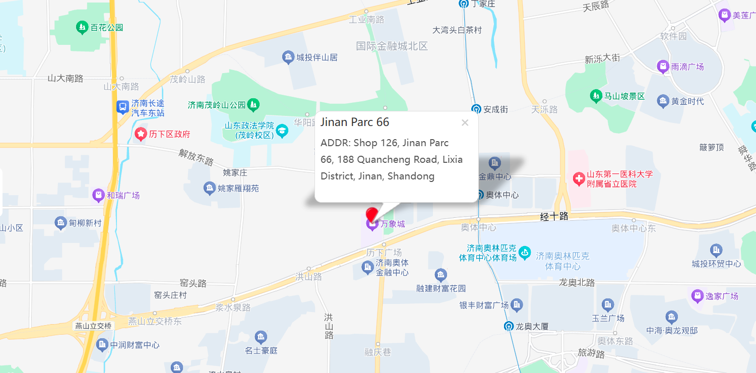 地址: Shop 126, Jinan Parc 66, 188 Quancheng Road, Lixia District, Jinan, Shandong