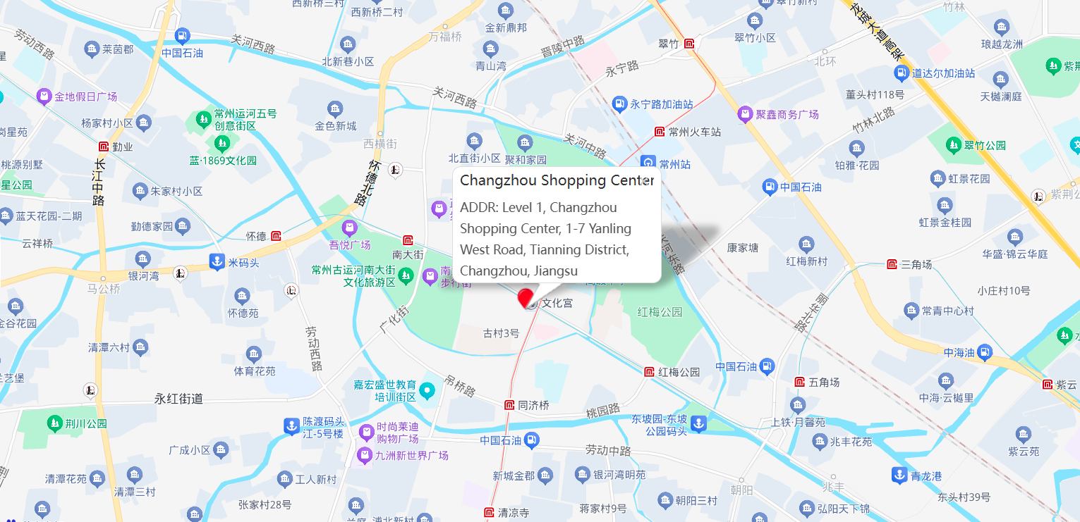 地址:Level 1, Changzhou Shopping Center, 1-7 Yanling West Road, Tianning District, Changzhou, Jiangsu